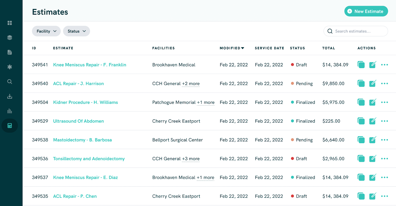 Instant GFE workflow: Estimates Dashboard. Feb 22 was a busy day.Securely Deliver, Save and Distribute the GFE: Once a GFE is complete, you can store it as a PDF, send it to the patient, or print it. Future integrations with popular EHRs will seamlessly push the GFE into the patient’s record.